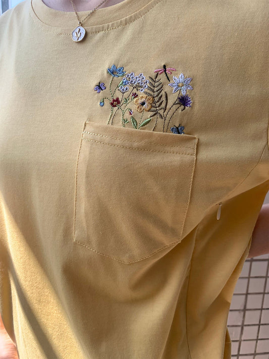 Faux Wild Flower Pocket Zip Nursing T-shirt